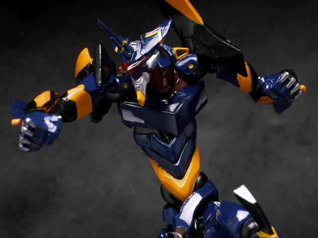 전신. 기본적으로는 다른 에바와 공통 부분이 많습니다만 머리와 어깨 장갑이 독특한 형태로.얼굴. 눈이 클리어 파트의 바이저 모양이 되어 있어 정수리등도 예각적이고 나쁜 듯한 얼굴 첨부.통상의 리볼텍으로 해서는 도장도 괜찮은 마무리. 단지 모퉁이는 미묘하게 구부러지거나 해서 개체차이가 있는 것 같았습니다.각 부위 등. 몸통도 다른 에바와 달리 3단 배에.고관절은 언제나처럼 아름다운 형태.팔과 다리. 어깨 장갑이 다른 기체보다 딱딱하고 곡선적인 형상이 되어 있는 것이 특징적이었습니다.옵션. 항상 그대로 핸드 파트가 풍부.유일한 무기 창.리보의 에바에보시리즈는 매번 바뀐 옵션이 붙습니다만, 이번에는 달 디스플레이가 부속.초호기 때와 마찬가지로 LED의 전식들이. 광량은 상당히 강하고 화려하게 빛납니다.