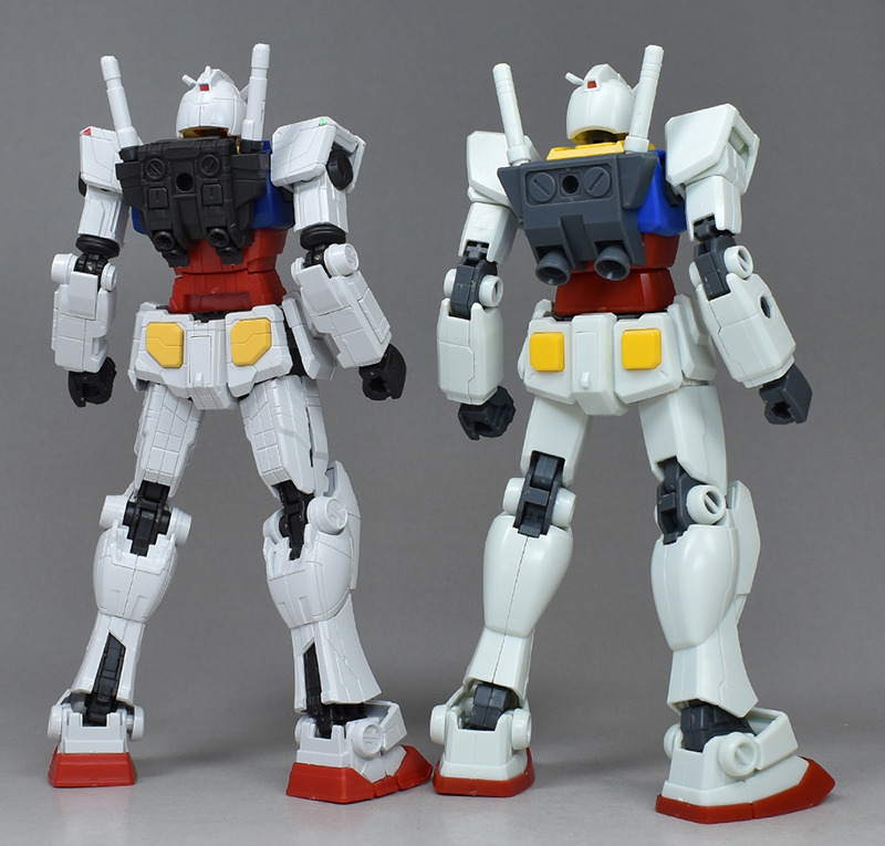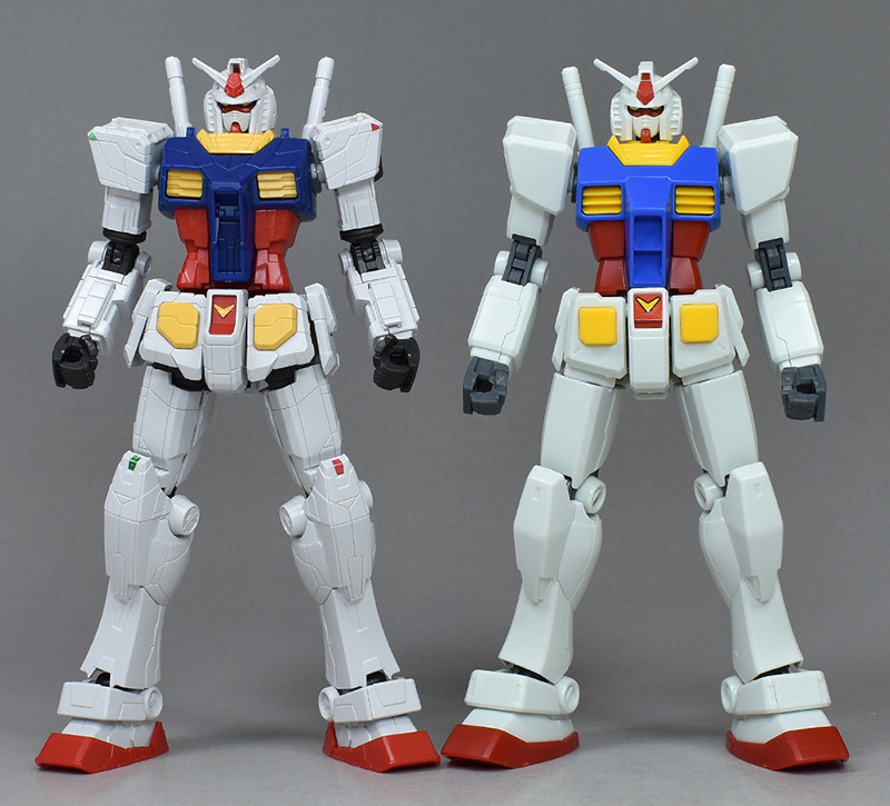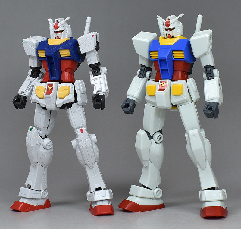 HGUC RX-78-2 건담(REVIVE)과 나란히 비교. 전체적인 몰드는 이질로 버릇이 있는 디자인입니다만, 조형적인 실루엣은 비교적 정통. 그래서 REVIVE판과 나란히도 표준적이고 그다지 변하지 않는 인상입니다.