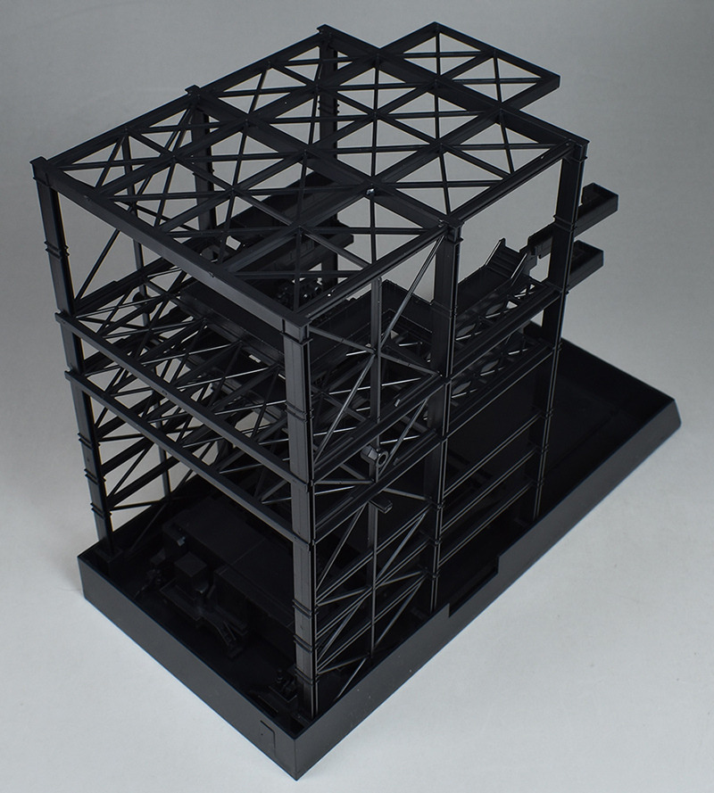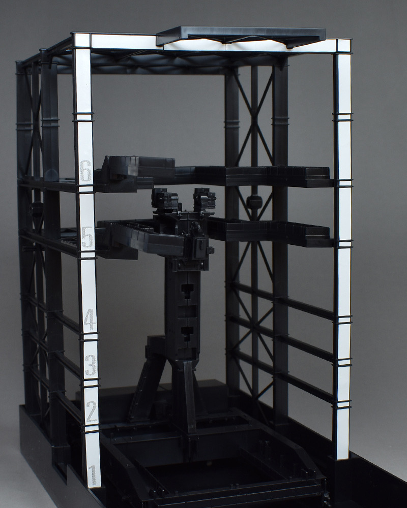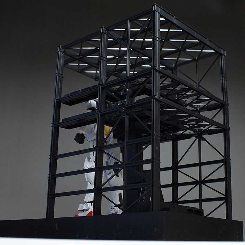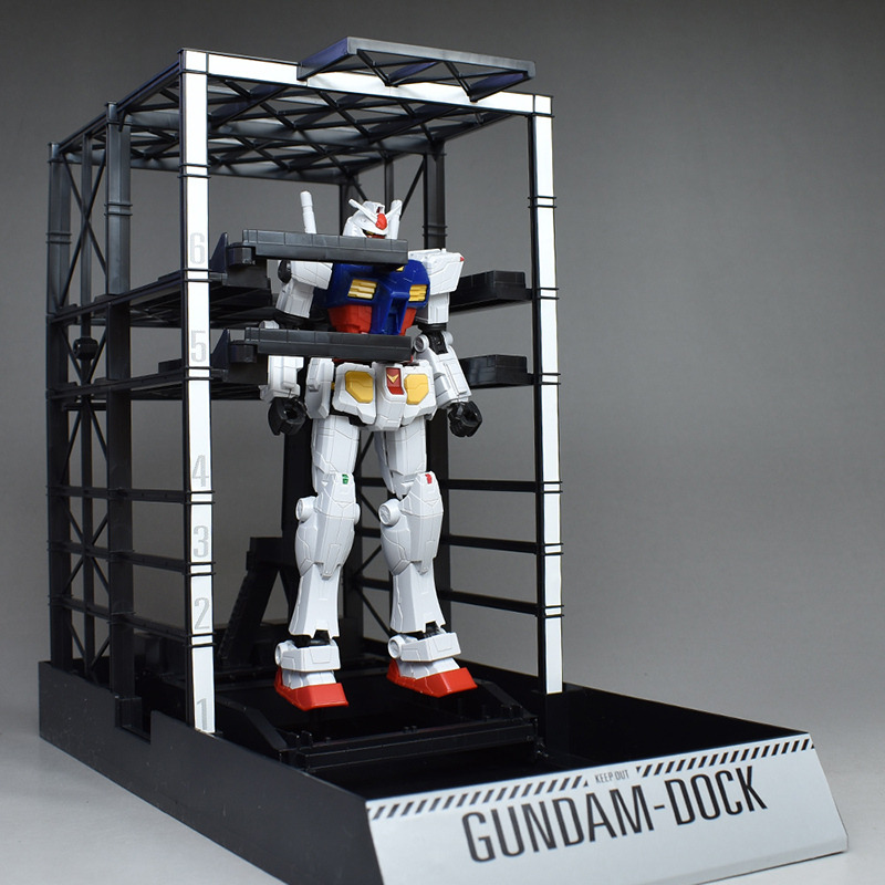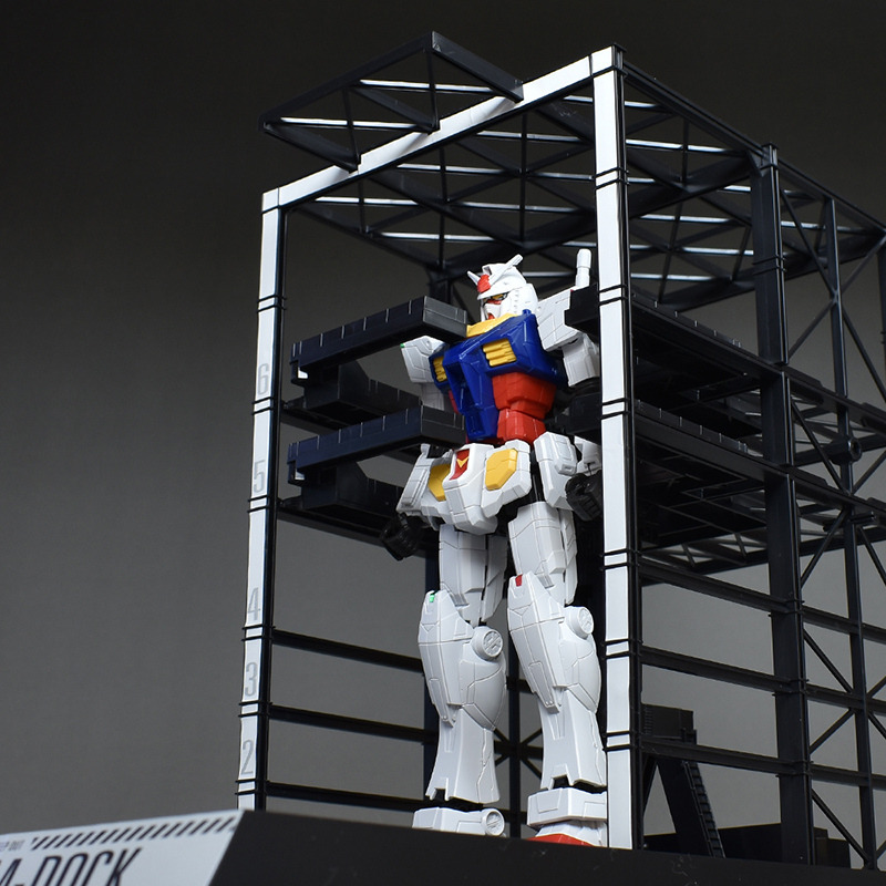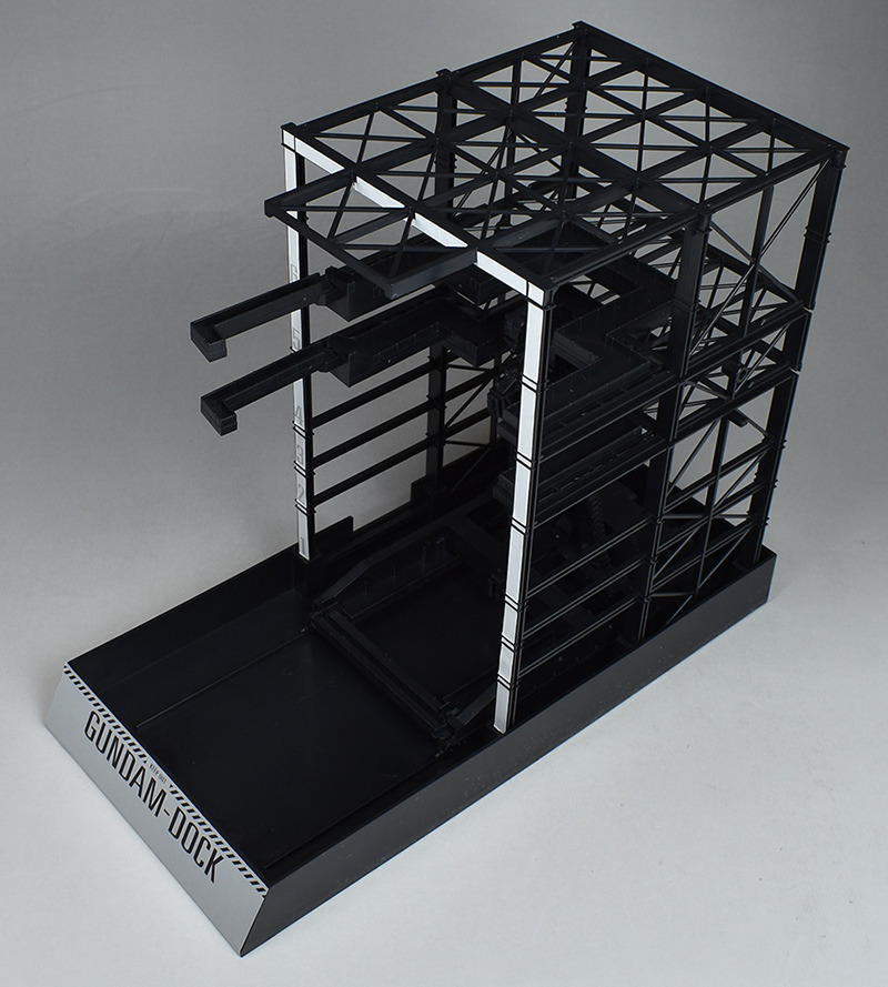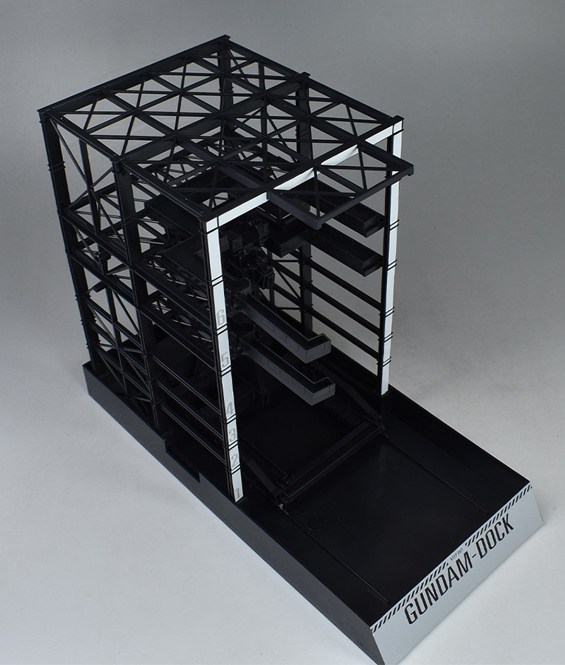 G 도크. 프레임 파트 몇 장을 조합하는 간이적인 제작입니다만, 실물이 움직이는 건담용 도크를 이미지 한 것 같은 구조물로서 조형되고 있습니다.