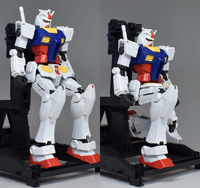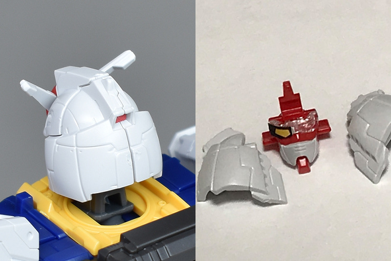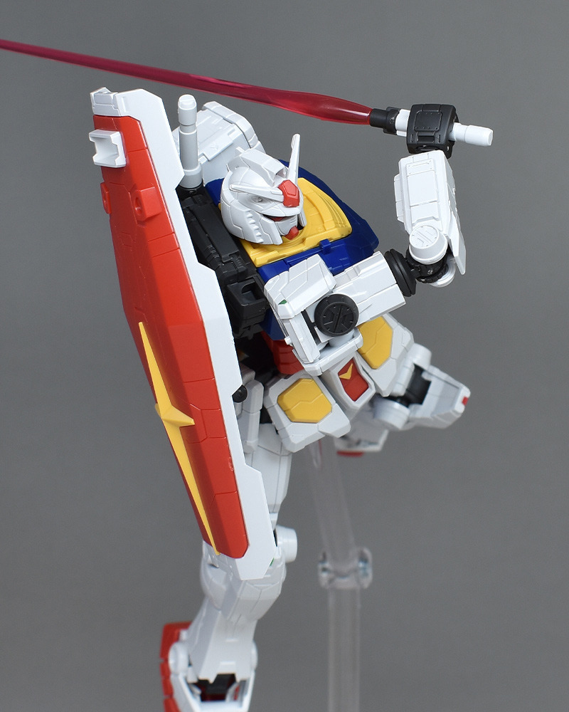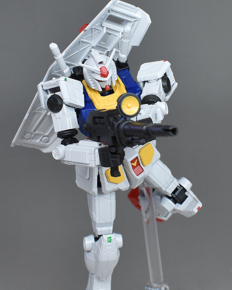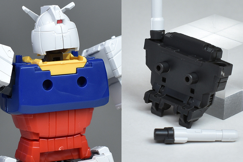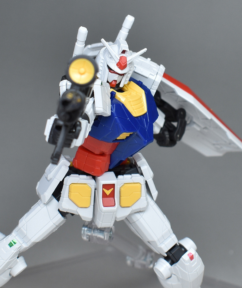 성형색은 화이트, 블루, 옐로우, 레드의 건담 타입 클래식한 컬러링. 각부에 이질적인 몰드가 들어가 있는 이외는 표준적인 배색이 되고 있기 때문에, 소조의 킷을 보면 통상의 RX-78-2와 큰 차이는 느끼지 않습니다. 씰도 어깨와 무릎의 센서를 보충할 정도입니다.