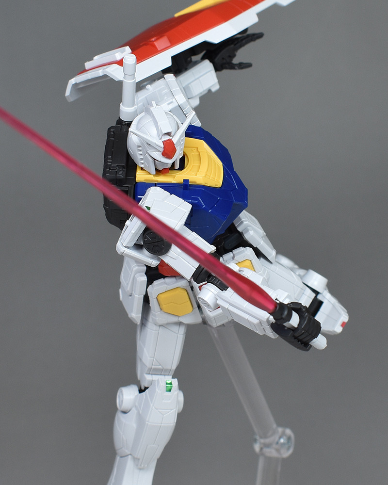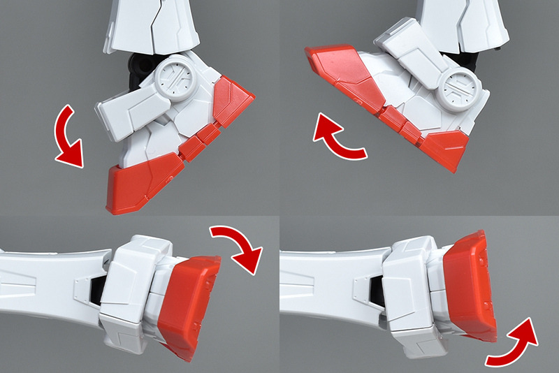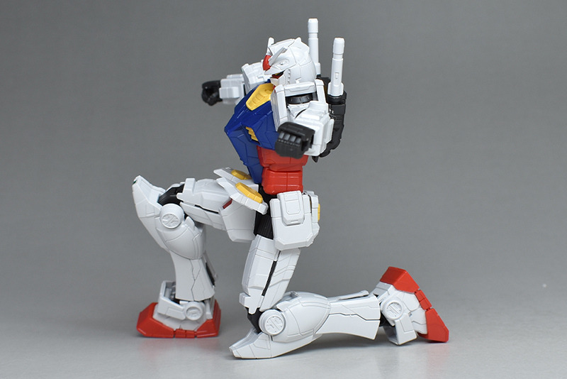 가동역의 총괄으로서는, 발목이 좀 더 구부러졌으면 좋겠습니다만, 팔 올리고나 좌우 개각은 완전하게 전개할 수 있는 등, 전체적인 가동역은 우수하다고 생각합니다. 단지 실물 건담의 움직임을 재현할 뿐만 아니라, 가시가시 움직이기에도 멋진 액션 포즈를 재현하기에도 최적인 키트라고 할 수 있을 것 같습니다.