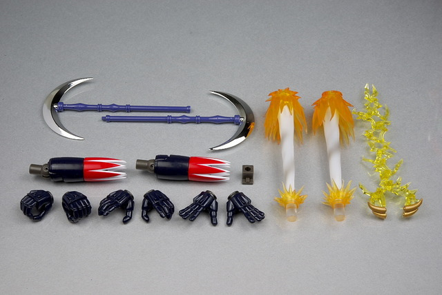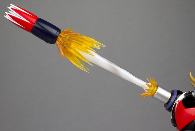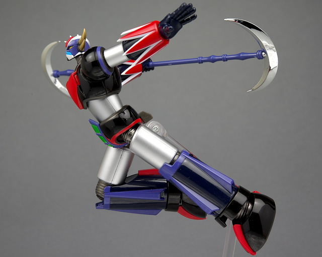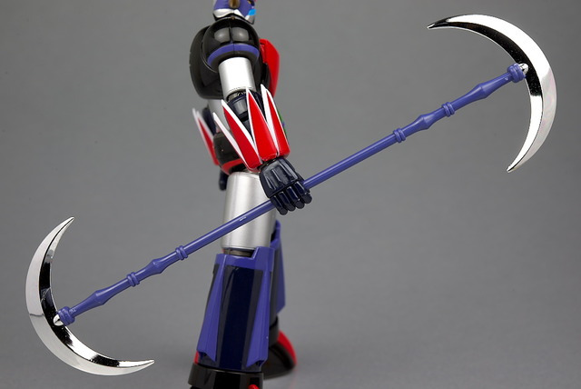 가동도 지금까지의 슈퍼로봇 초합금 시리즈와 마찬가지로 인출식 관절 등 기믹이 풍부하게 포함되어 있어 움직이기 쉽고, 다양한 무기들도 각각 정확하게 재현되어 있어 놀이의 측면에서도 매우 만족스러웠습니다.