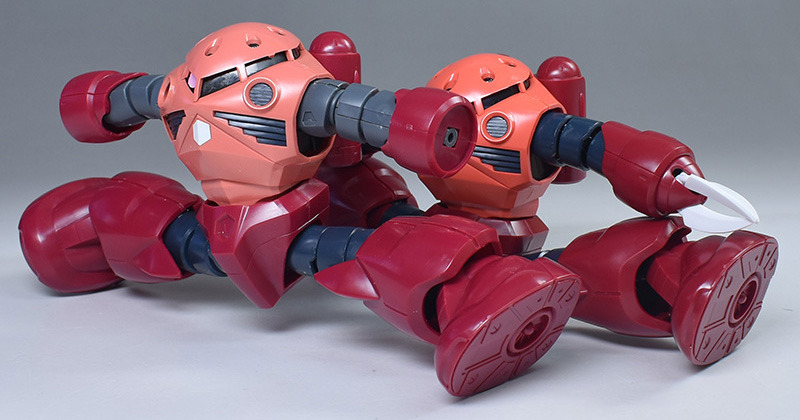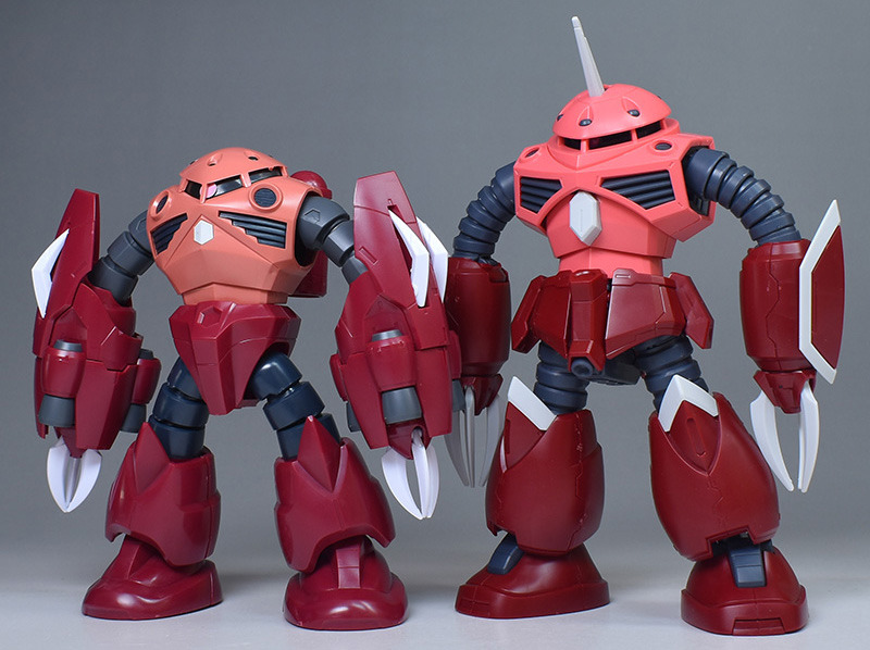 HGUC 샤아 전용 즈곡 과 나란히 비교. 팔부 이외의 형상은 완전히 동일하다. 하지만 어메이징즈고쿠는 팔 부분이 대형화한 것으로 전체적으로 볼륨감이 나오고 있습니다. 그것과 몸통 부분의 색상이 다르기 때문에 조금 인상이 다릅니다.