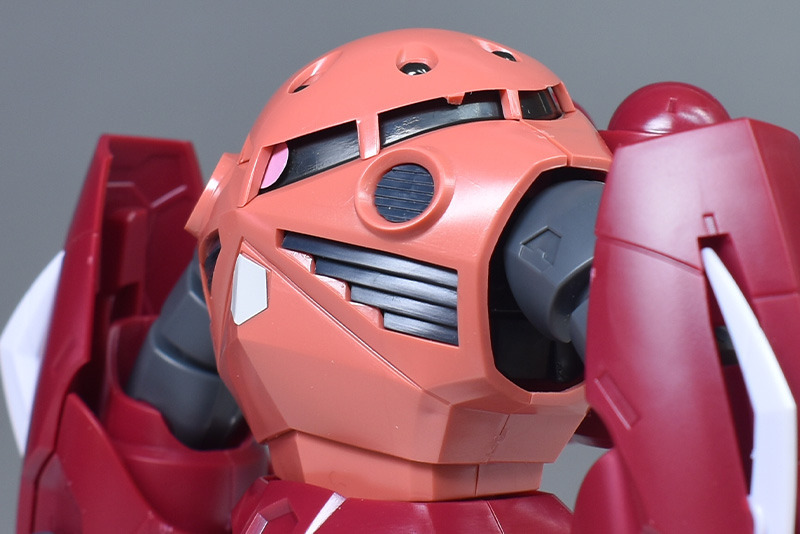 머리와 몸통 부분. 형상 자체는 HGUC 샤아 전용 즈곡과 완전히 동일합니다. 머리와 몸통부는 수륙 양용기다운 일체형 사양의 인간 버릇있는 디자인.
