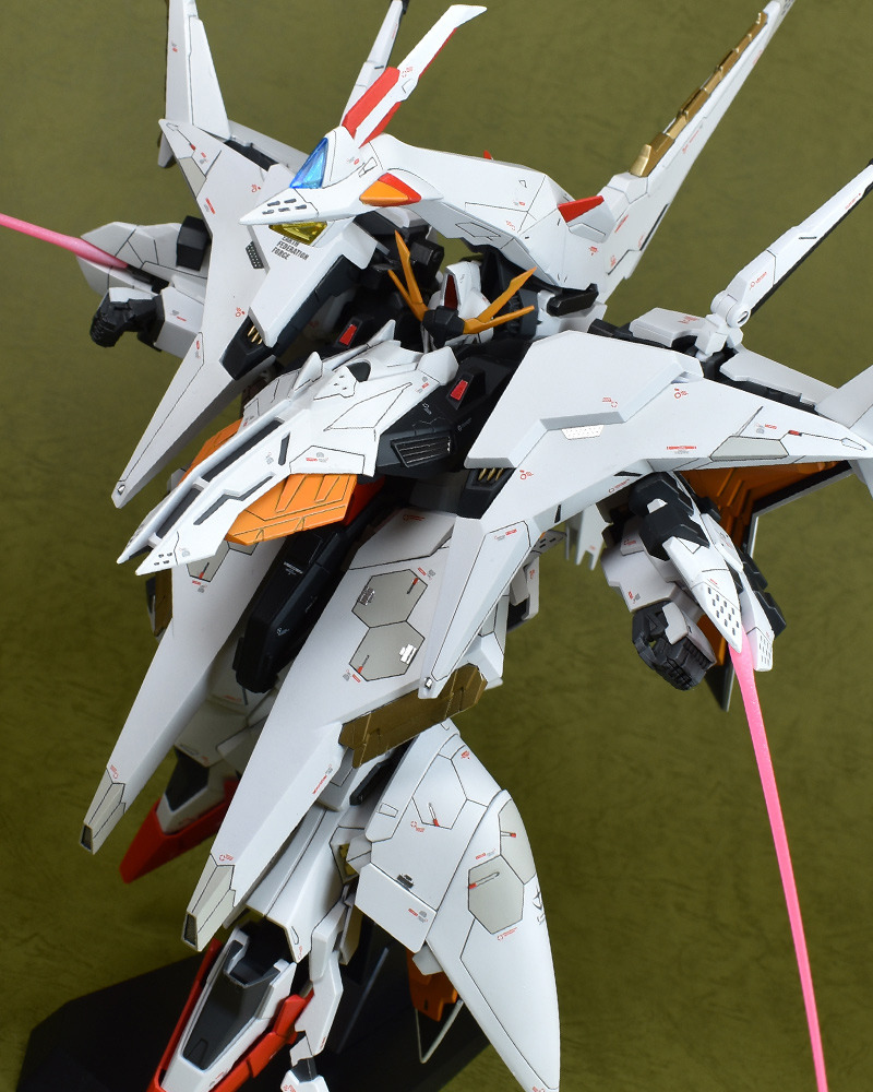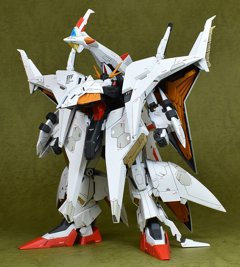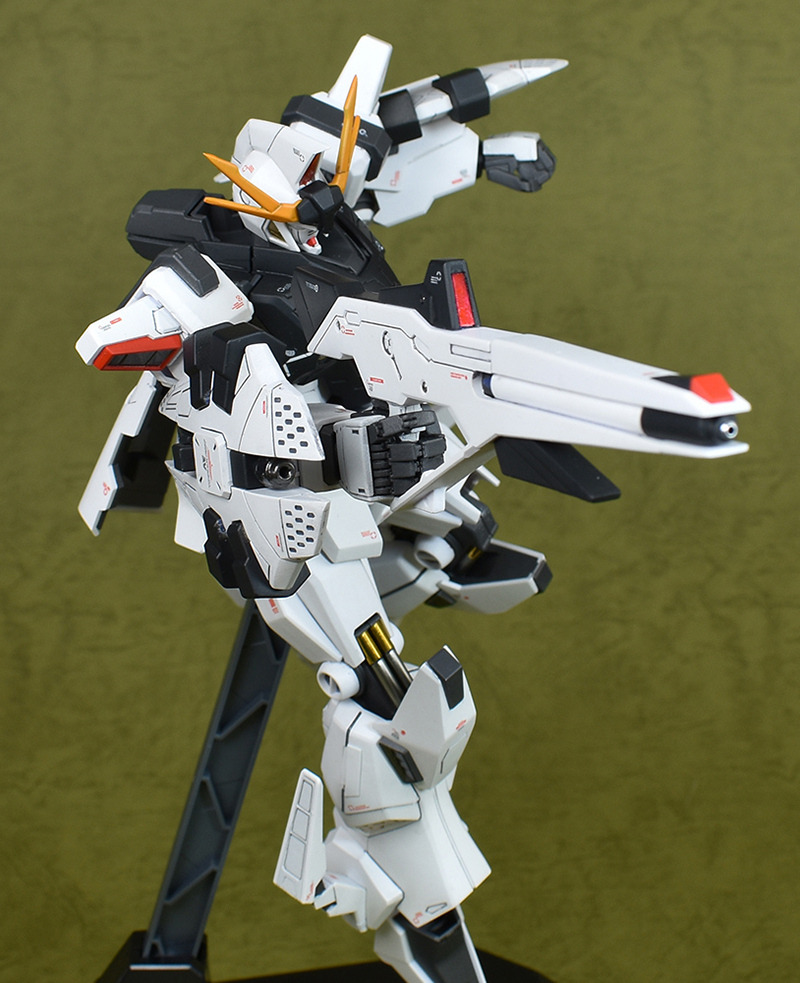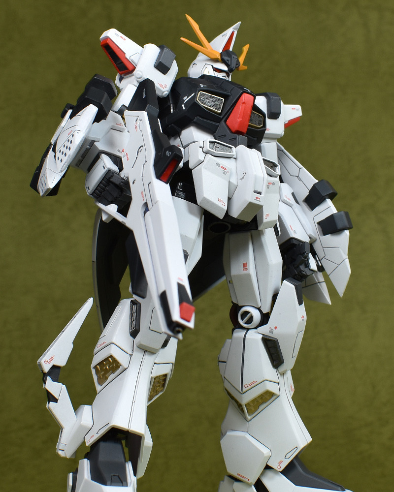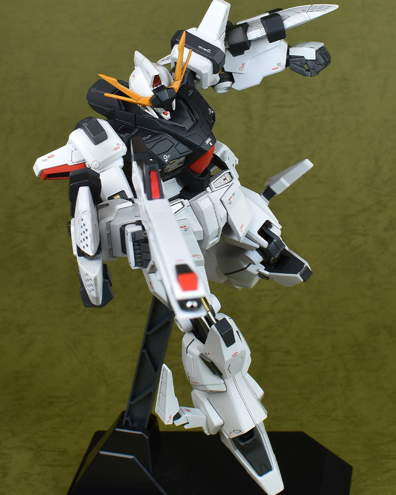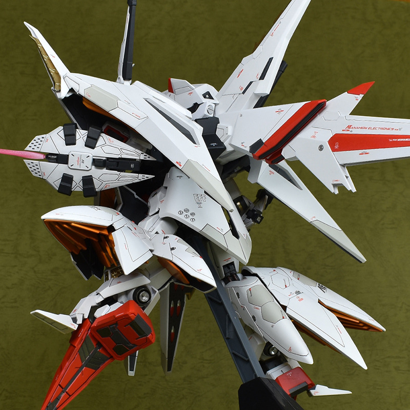제작에 관해서는 각 부위의 샤프닝과 메탈 파츠를 사용한 디테일 업, 제타 건담의 가슴부 파츠를 사용한 개조, 각 부위에 레드칩 추가 등을 실시했습니다.