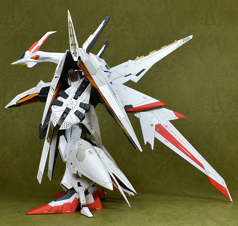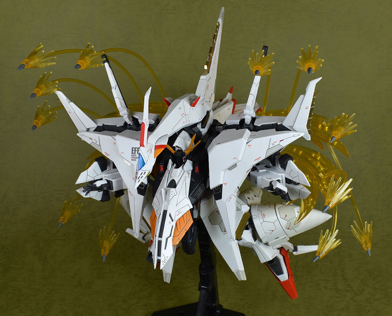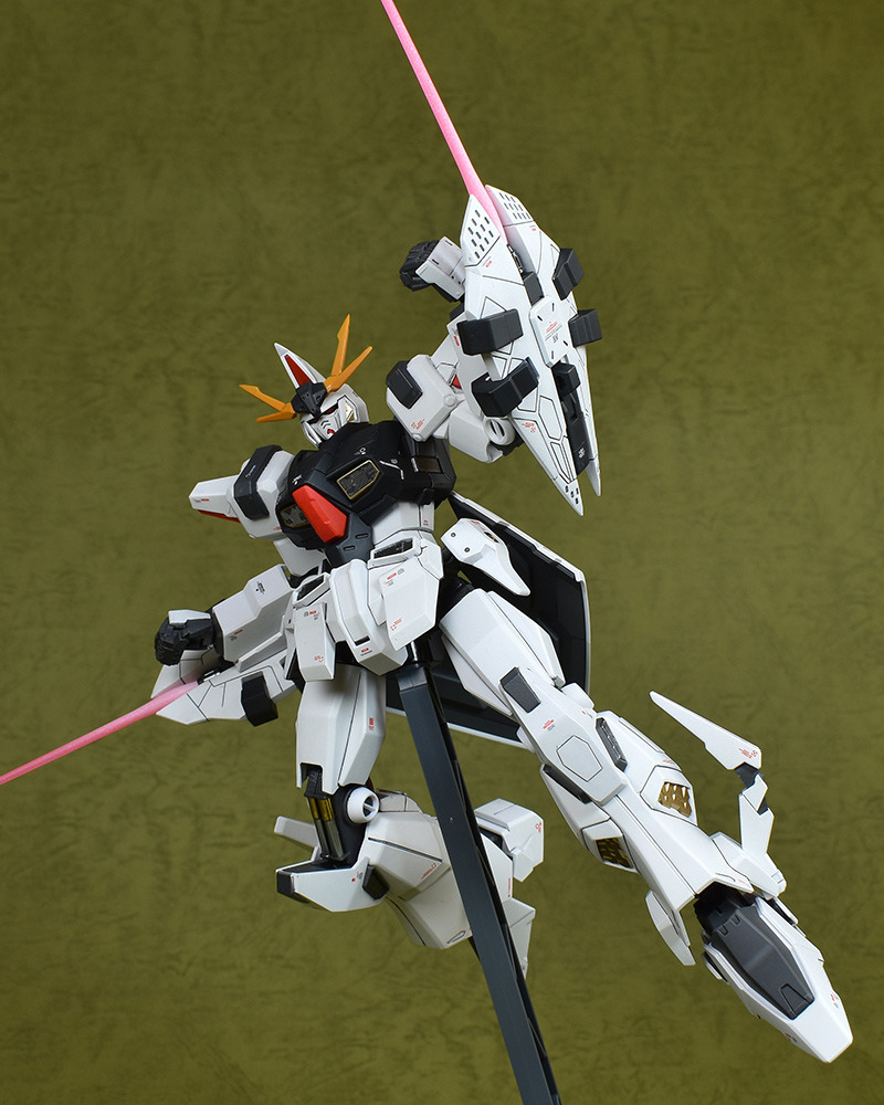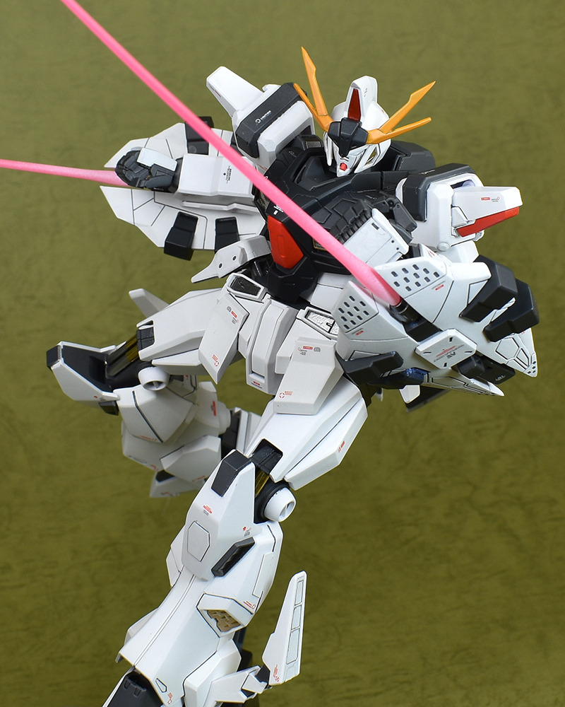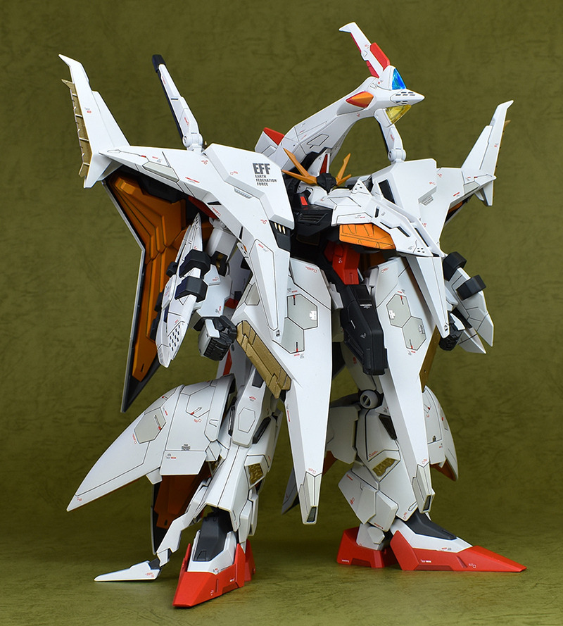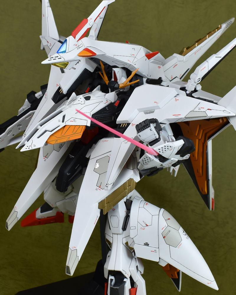 제작에 관해서는 각 부위의 샤프닝과 메탈 파츠를 사용한 디테일 업, 제타 건담의 가슴부 파츠를 사용한 개조, 각 부위에 레드칩 추가 등을 실시했습니다.