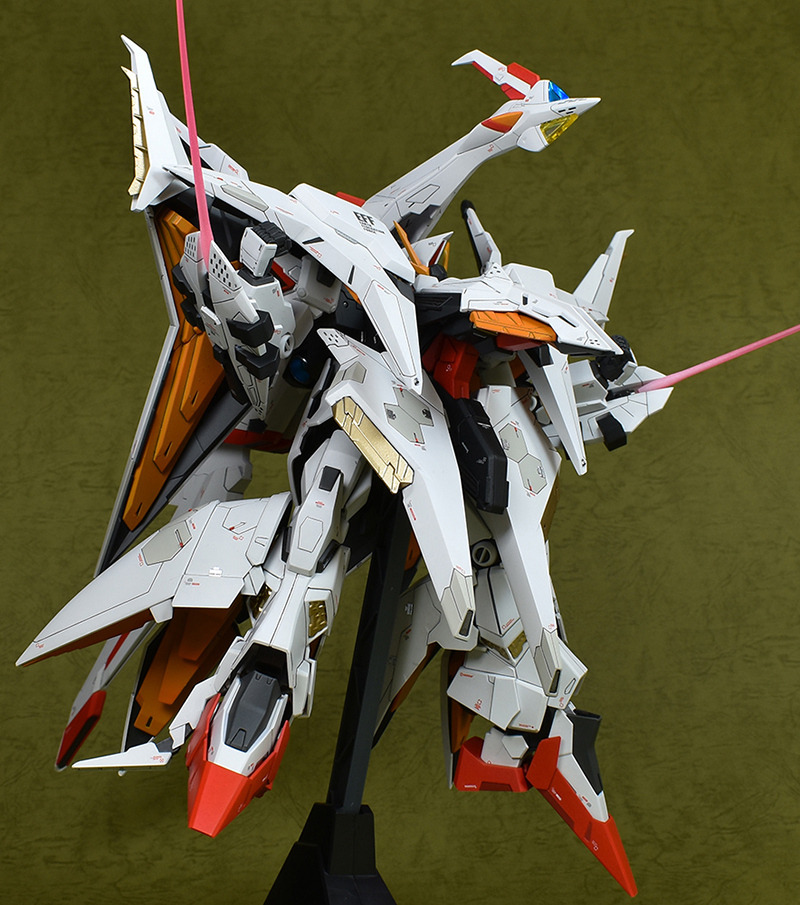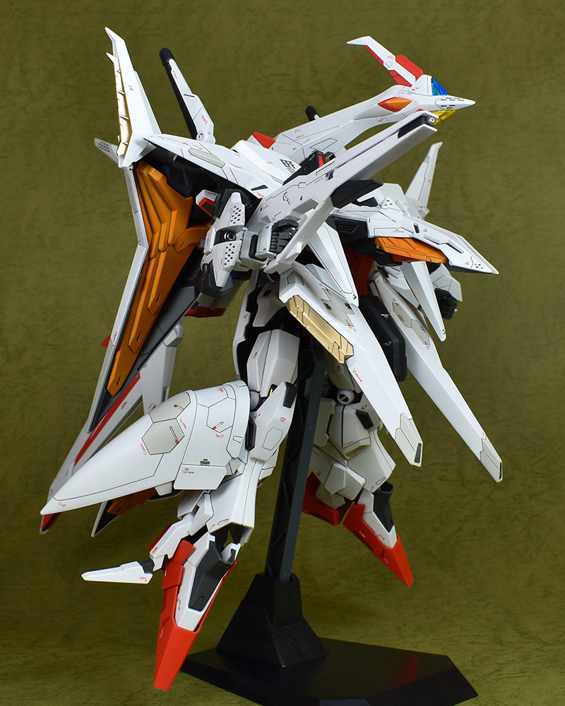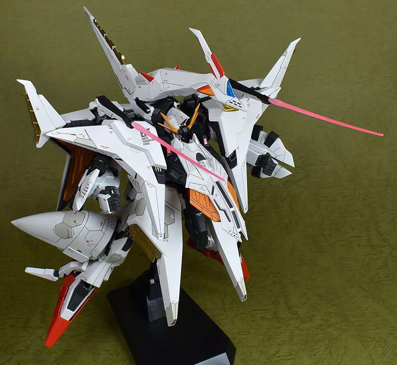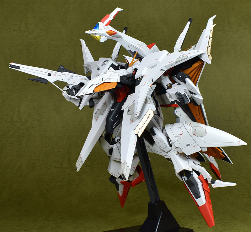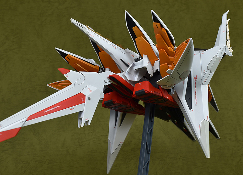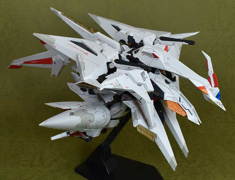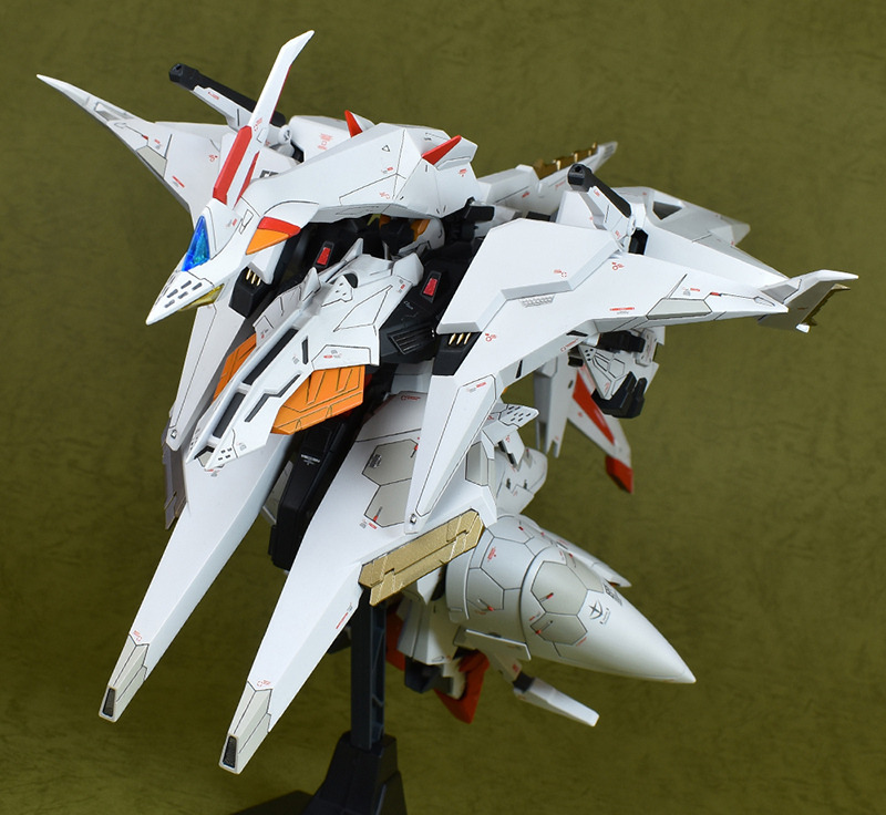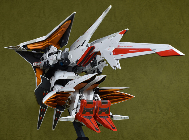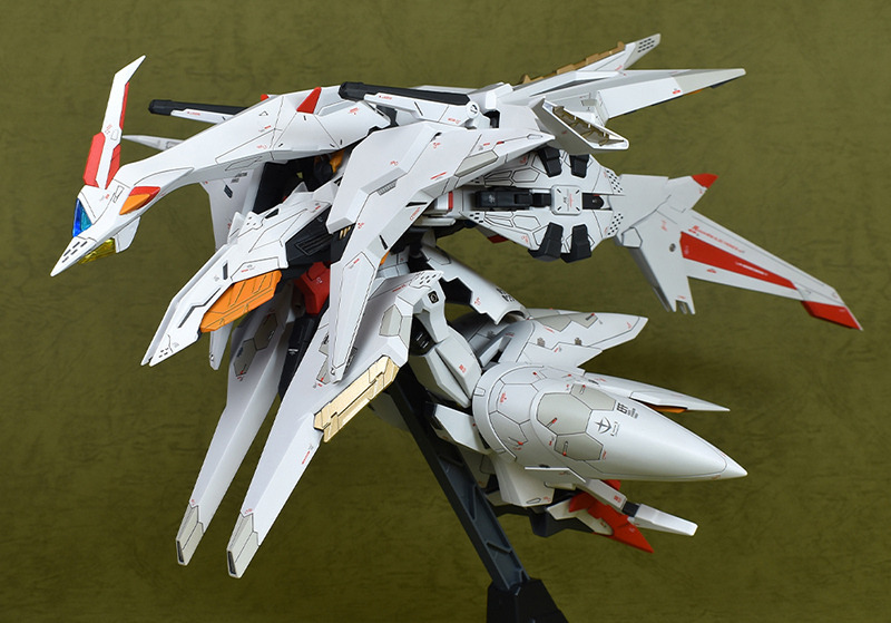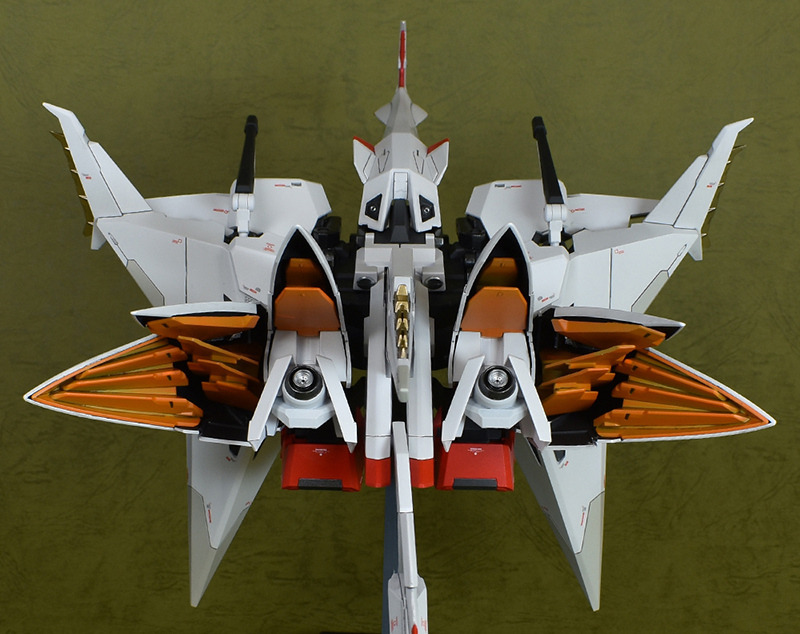 각부를 변형시켜 비행 폼에. 약간 전경 자세가 되어, 비행 유닛과 같은 스타일로 변화했습니다. 다리는 뒷부분의 서브 암과 연결하게 되어 있기 때문에 거대하면서도 안정된 자세 유지가 가능합니다.