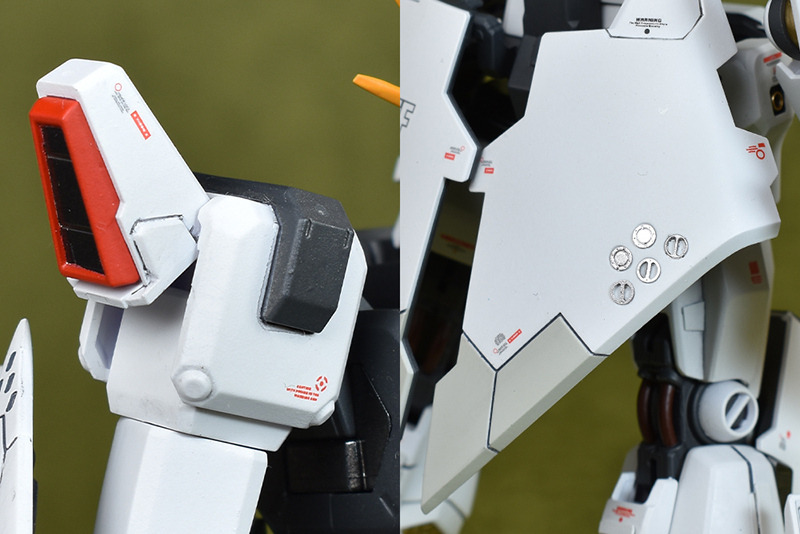 전면 갑옷의 하부 덕트는 회색으로 칠하고 모델링 메쉬를 접착하고, FF 유닛의 어깨 부분 장갑 전면은 일부를 밝은 회색으로 칠하고, 일부에 레드 팁을 칠한 스테인리스 스틸 씰을 붙였다. 일부에 붉은색 칩과 도색한 스테인리스 스틸 씰을 붙였다.