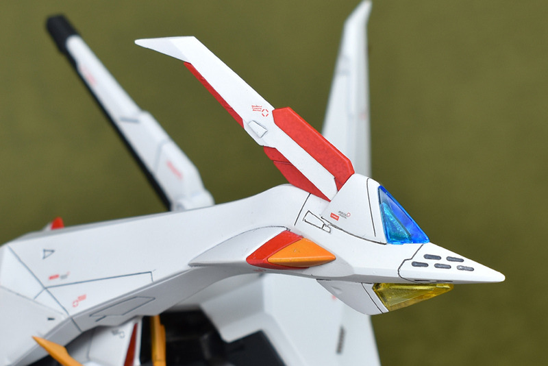 FF유니트의 기수는 첨단과 확실히 프라판을 담아 샤프화. 측면의 빨강과 오렌지 부분을 후 하메 처리하고 있습니다. 센서는 상부를 클리어 블루, 하부를 클리어 옐로우+GX 딥 클리어 레드(미량)로 도장. 내부에는 홀로그램 마무리가 붙여져 있습니다.