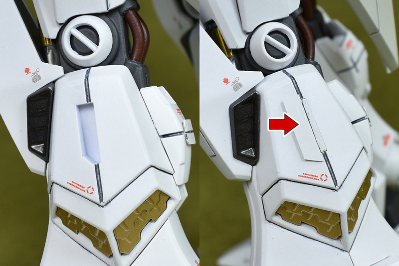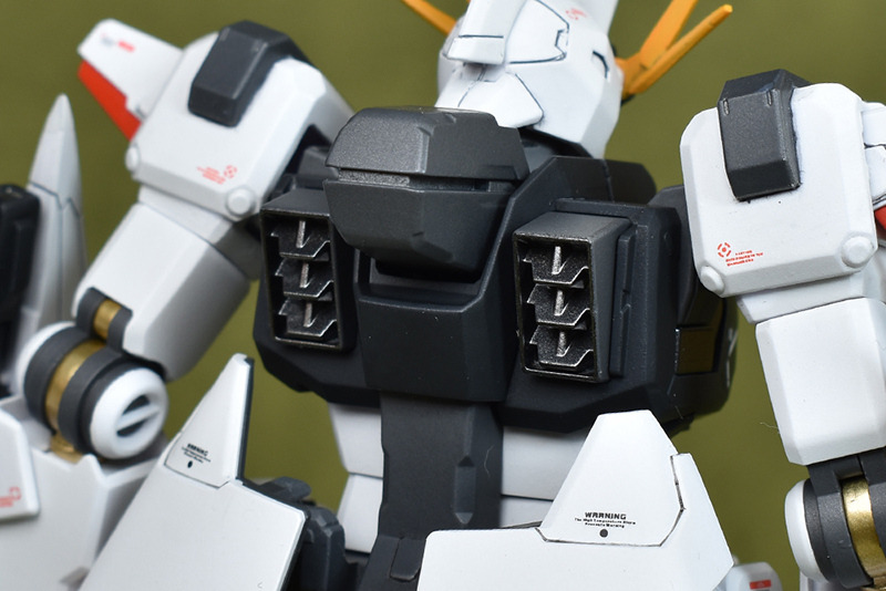 흉부 뒤는 일부를 플라스틱 판과 퍼티로 구멍 메우기. HG 제타 건담 3호기에서 빌린 흉부 파츠에 의해, 설정화에서 보여진 장갑을 자작하고 있습니다.